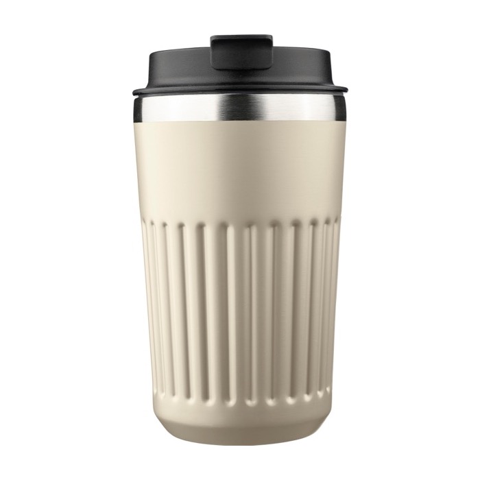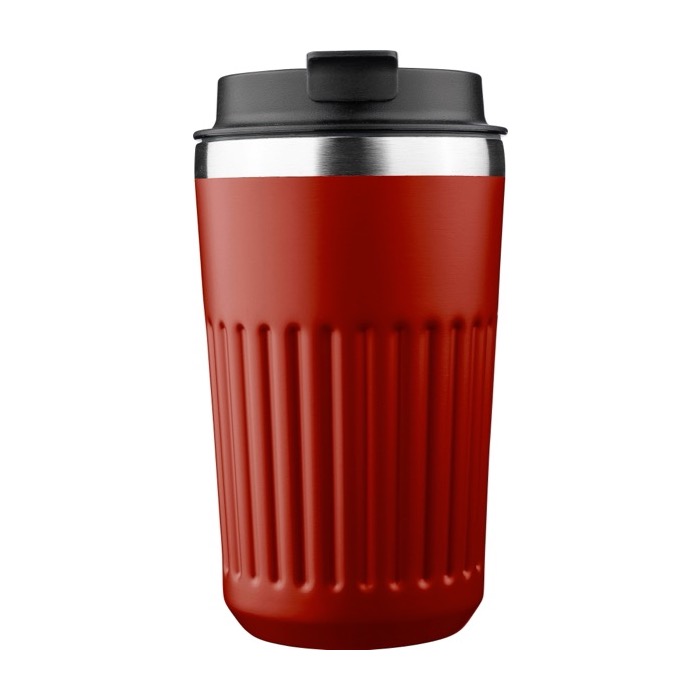 Bicchiere termico per la routine aziendale: doppia parete, finitura rugosa e tappo incluso. Un accessorio di qualità per eventi, onboarding e campagne promozionali.