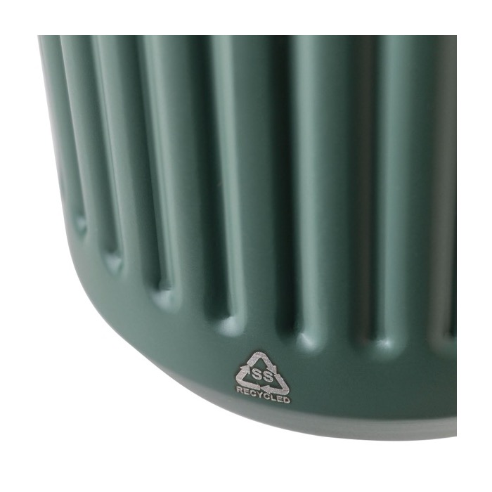 Vaso da viaggio in acciaio inossidabile riciclato con doppia parete e trama ruvida esterna, pensato per l'uso quotidiano in ufficio o spostamenti. L'interno è realizzato in acciaio inossidabile 304 e l'esterno in acciaio inossidabile 201, una combinazione pratica per mantenere la temperatura e resistere al ritmo di lavoro. Include tappo in plastica per una chiusura comoda. Raccomandato per azioni interne, eventi e merchandising con logo.