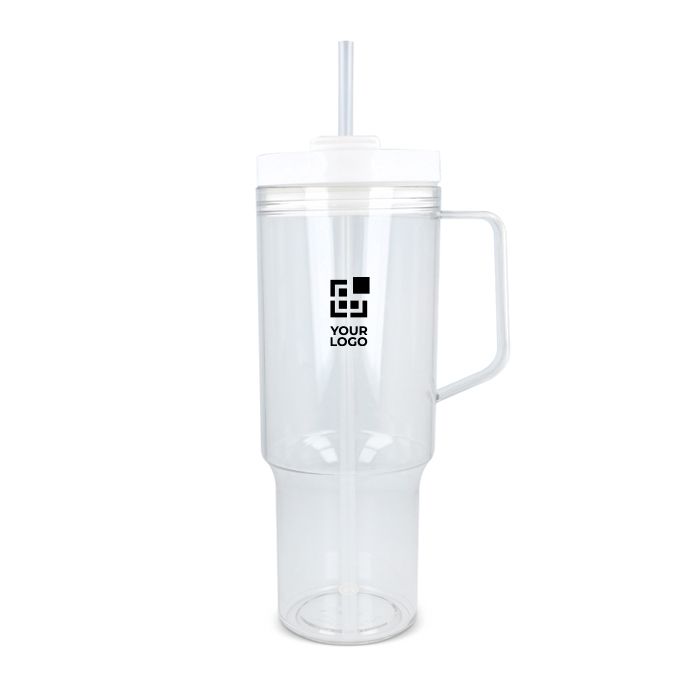 Tazza termica con manico, cannuccia e coperchio antigoccia. Ti accompagna tra riunioni e spostamenti, mentre il tuo logo resta visibile in ogni pausa caffè.