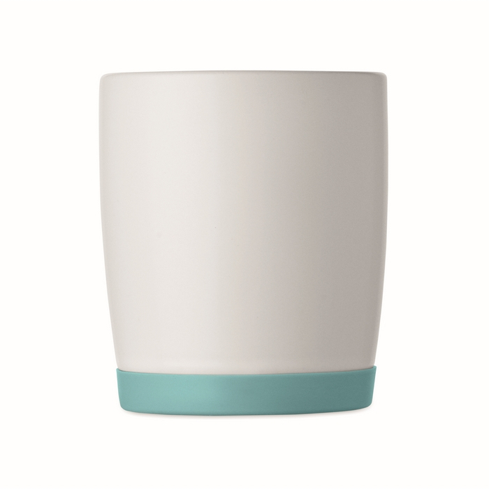 Tazza in ceramica bianca opaca con base in silicone colorata 300ml