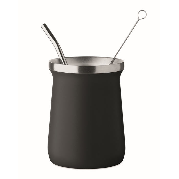 Bicchiere per mate in acciaio inox con cannuccia e spazzolino