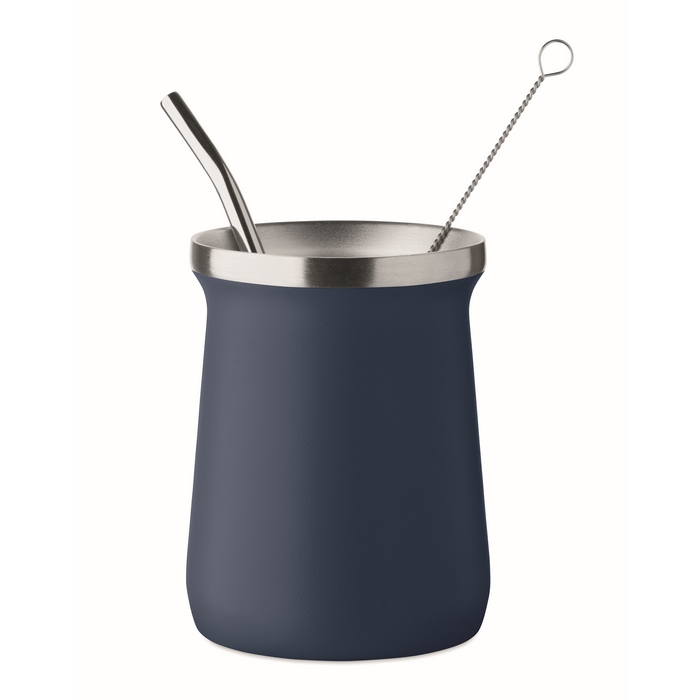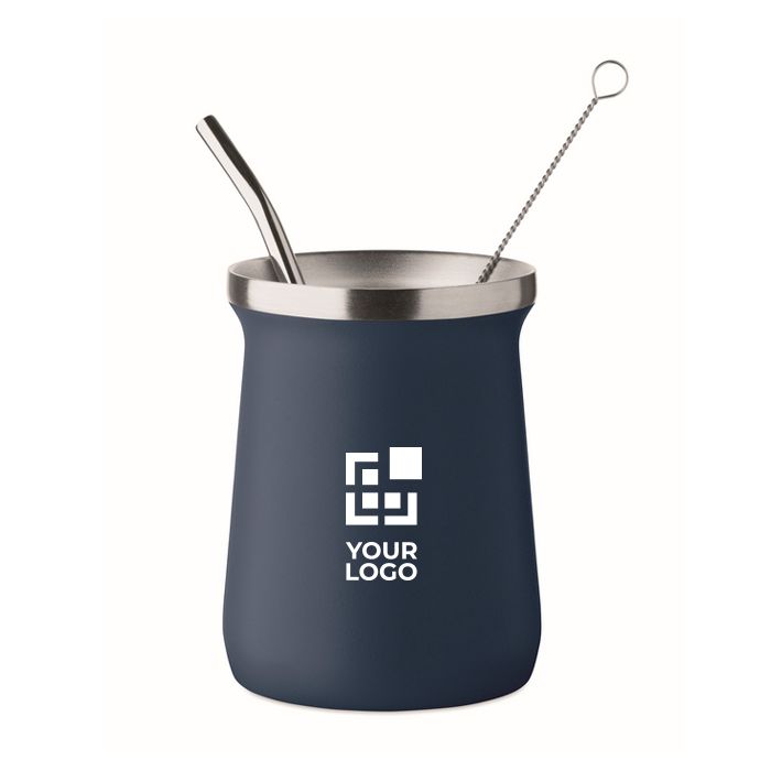 Aumenta l’impatto dei tuoi eventi in modo originale con questo bicchiere in acciaio inox a doppia parete progettato per yerba mate. Include cannuccia e spazzolino.
