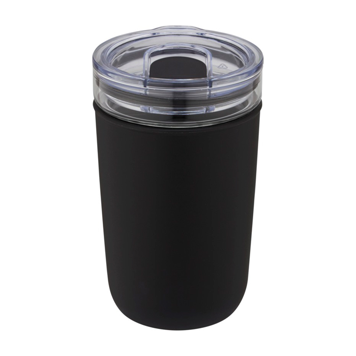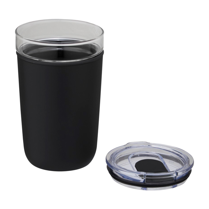 Bicchiere in vetro con custodia protettiva colorata realizzata in plastica riciclata. Il bicchiere è realizzato in resistente vetro borosilicato al 100% e non contiene sostanze chimiche nocive. Privo di BPA, testato e approvata ai sensi della normativa tedesca in materia di sicurezza alimentare (LFGB). Testato e approvata per il contenuto di ftalati secondo il regolamento REACH. Il bicchiere è adatto per la maggior parte delle macchine da caffè. Capacità di 420 ml. Lavabile in lavastoviglie, basta rimuovere la custodia. Fornito in una confezione regalo in cartone riciclato.