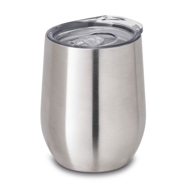 Un desing innovativo e moderno perfetto per questi bicchieri promozionali realizzati in acciaio inossidabile e dotati di coperchio.