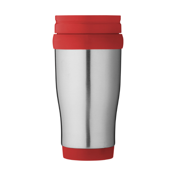 Bicchiere termico take away a doppia parete con tappo a vite e apertura scorrevole. L'esterno è realizzato in acciaio inossidabile, mentre l'interno è in plastica senza BPA. Capacità massima 400 ml.