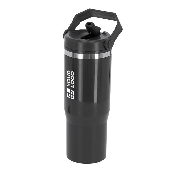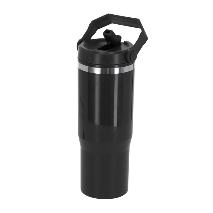 Bicchiere termico in plastica a doppia parete con capacità di 900ml, pensato per l’uso quotidiano in ufficio e negli spostamenti. Integra una cannuccia per bere comodamente e un coperchio con sistema di chiusura ermetica che aiuta a evitare fuoriuscite. Include un manico per il trasporto per portarlo più facilmente. Mantiene il caldo fino a 2 ore e il freddo fino a 4 ore, a seconda delle condizioni d’uso. Senza BPA e con certificazione Food Grade per il contatto alimentare. Una risorsa pratica per iniziative interne, eventi e regali aziendali con logo.