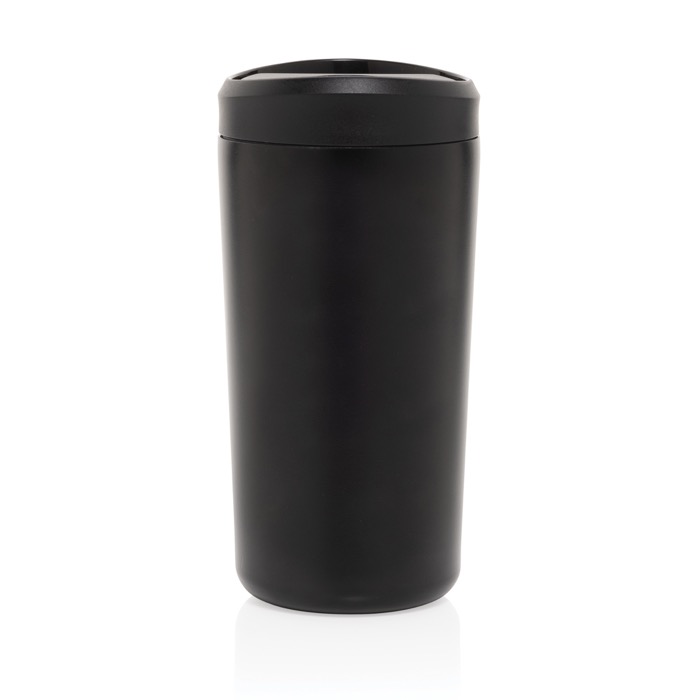 Grazie al sistema di apertura con un solo clic e una sola mano, questa tazza termica è progettata proprio per bere velocemente, rendendola perfetta per il viaggio mattutino o per gli spostamenti quotidiani. Il coperchio elegante e facile da pulire completa il tutto, realizzato in acciaio riciclato certificato RCS, unendo sostenibilità e stile. Con i suoi 400 ml, è la dimensione ideale per le tue bevande calde preferite. Confezionato in carta kraft ecologica certificata FSC®, il contenitore è più di un semplice imballaggio: si trasforma in un elegante supporto per il telefono, in un portamatite o addirittura in un mini vaso da fiori. Contenuto totale riciclato: 66%, in base al peso totale dell'articolo.