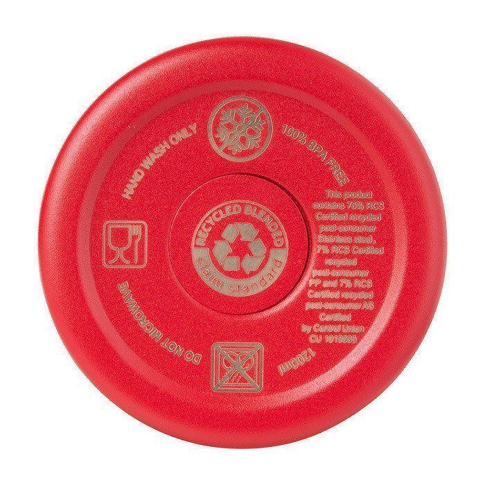 La tazza termica con isolamento sottovuoto in rame a doppia parete certificata RCS, realizzata con il 91% di acciaio inossidabile post-consumo riciclato che mantiene le bevande fredde per almeno 24 ore o calde per 9. Presenta una cannuccia in Tritan e un coperchio girevole a pressione in plastica riciclata al 100%, antifuga, con aperura scorrevole per bere e che mantiene saldamente in posizione la cannuccia. Rivestimento esterno verniciato a polvere resistente. Lavarla solo a mano. Ha una capacità di 1.200 ml.