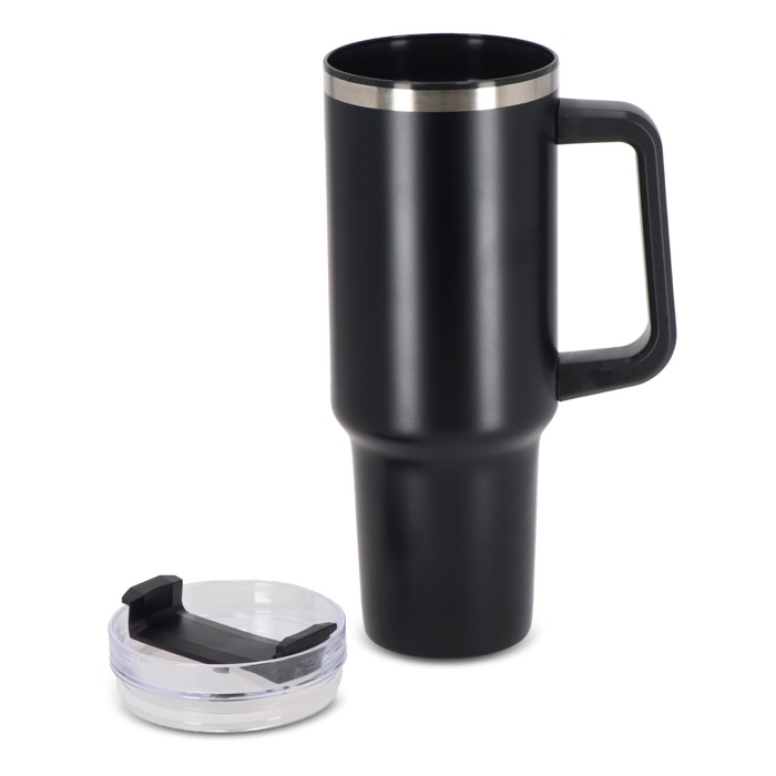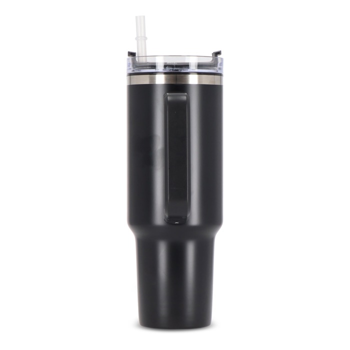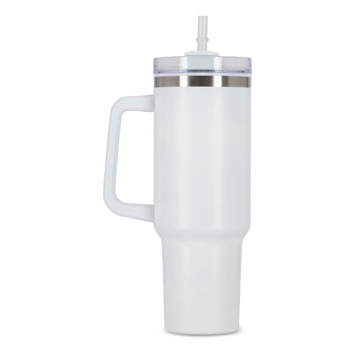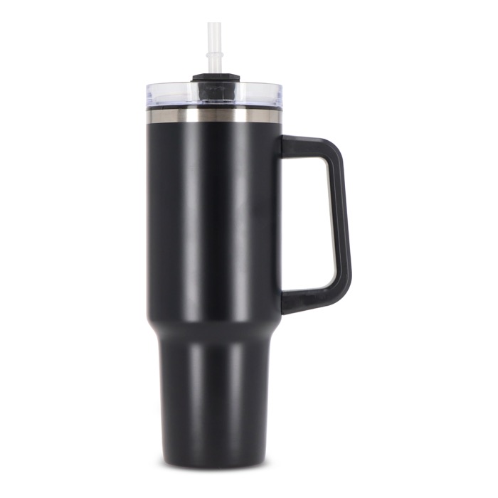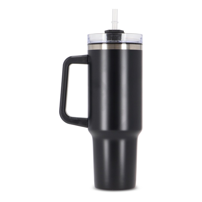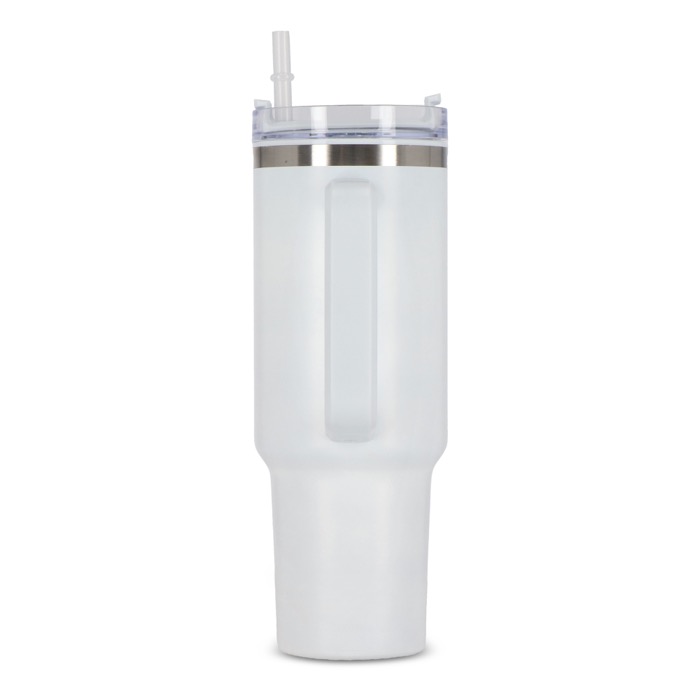 Una tazza termica con cannuccia incorporata, realizzata in acciaio inossidabile con interno in plastica riciclata. Ha una capacità di 1,2 L, pari alla quantità d'acqua giornaliera raccomandata. Il prodotto è composto per il 90% da materiali riciclati ed è certificato GRS, a garanzia di un impegno responsabile e sostenibile. Il design moderno e funzionale, con manico integrato, lo rende il compagno ideale per la palestra, il lavoro o qualsiasi attività che richieda un'idratazione costante. È inoltre personalizzabile tramite tampografia o incisione laser, due tecniche che consentono di valorizzare in modo permanente e originale il logo della tua azienda.