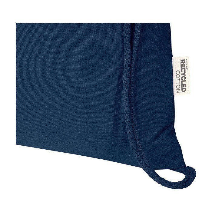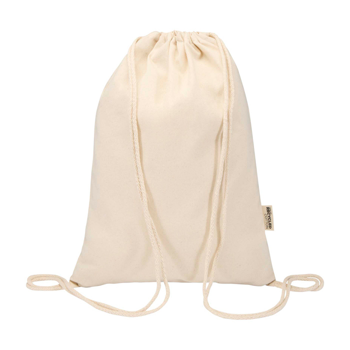 Sacca con cordino in cotone riciclato e plastica riciclata con certificazione GRS (Global Recycled Standard), pensata per l’uso quotidiano. Si può portare comodamente sulla schiena o a spalla e offre un ampio scomparto principale con chiusura a cordino per aprire e chiudere in pochi secondi. Il tessuto da 180 g/m² garantisce una buona resistenza senza aggiungere peso e consente la personalizzazione con logo o messaggio con un’ottima area di stampa. Supporta fino a 5 kg, utile per fiere, iniziative HR o campagne di brand.