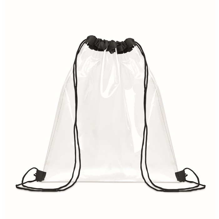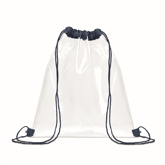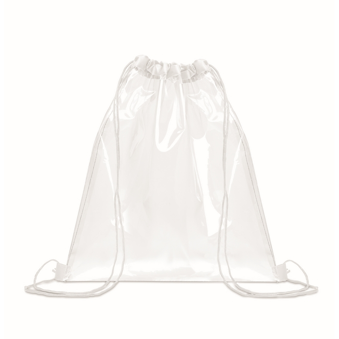 Sacca con cordoncini in plastica trasparente con cordoncini