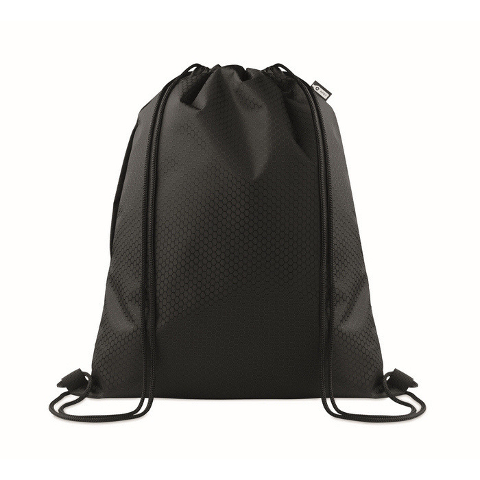 - Sacca zaino con cordini RPET 420D con tasca laterale