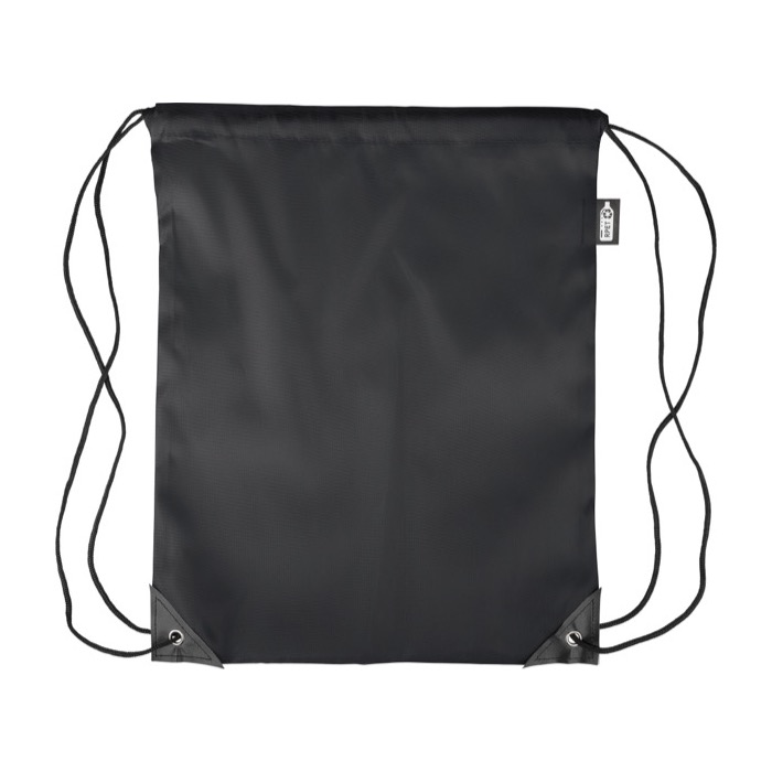 Sacca con coulisse in poliestere con angoli e cordini neri