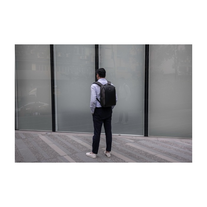 Zaino in tessuto balistico riciclato 800D, idrorepellente e antimacchia, con dettagli in pelle sintetica e un design pensato per l’uso quotidiano. Offre una capacità di 22 L e uno scomparto imbottito per laptop fino a 16 pollici, oltre a una tasca posteriore antifurto per proteggere gli oggetti di valore. Include un vano portaocchiali, due tasche laterali, soffietto estensibile e fascia per trolley. Lo schienale con imbottitura traspirante migliora il comfort durante i lunghi spostamenti. Ideale per attività di branding, onboarding o eventi aziendali.