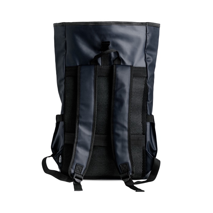 Zaino in plastica riciclata con rivestimento in pelle sintetica, pensato per un uso quotidiano intenso e una maggiore resistenza agli schizzi. Integra uno scomparto principale con chiusura e una tasca imbottita per portatile fino a 15,6'', oltre a una tasca frontale e tasche laterali per organizzare accessori, bottiglia o documenti. Gli spallacci regolabili e imbottiti aiutano a distribuire il peso negli spostamenti. Un’opzione pratica per l’uniformità aziendale, eventi e azioni di visibilità con il tuo logo.