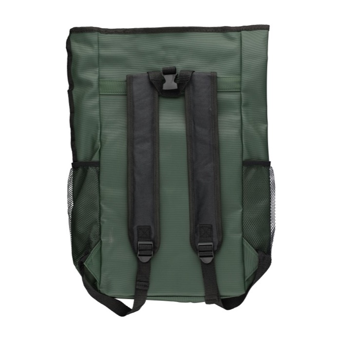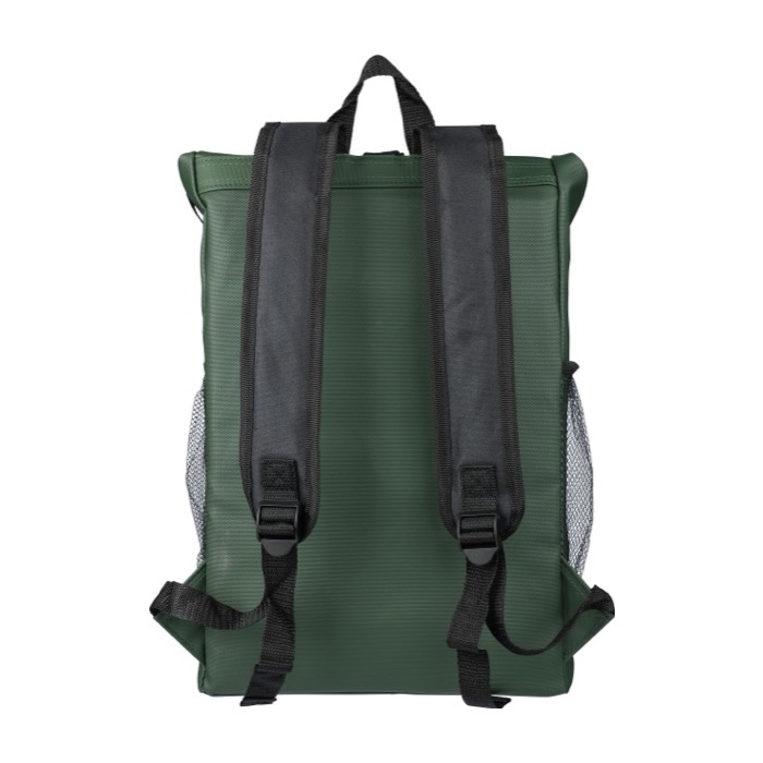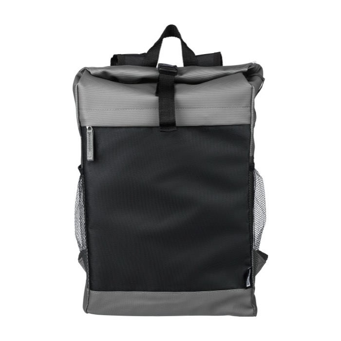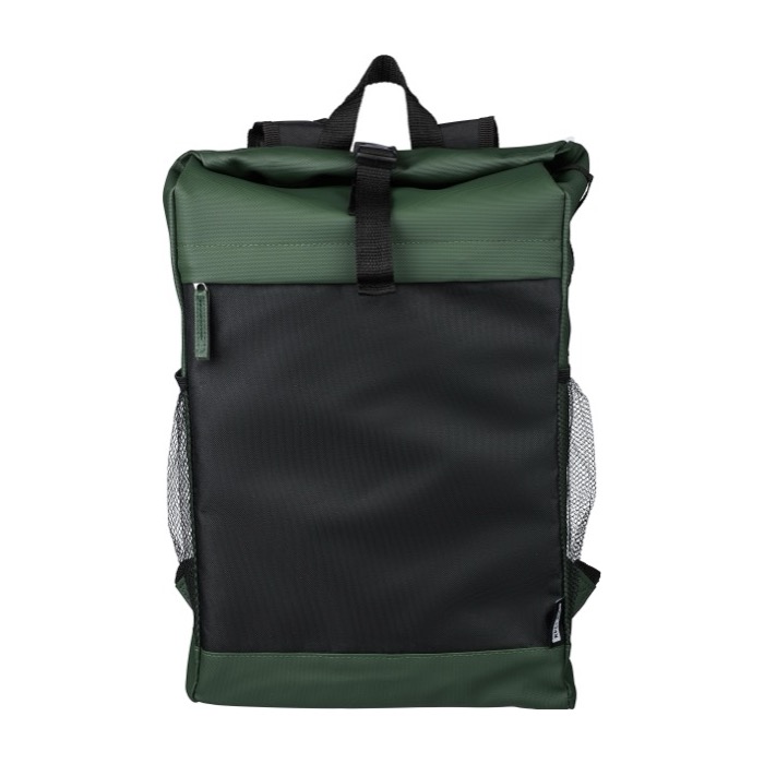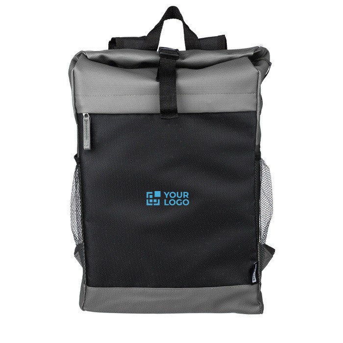"Zaino rolltop in poliestere 600 D rPET con rivestimento idrorepellente in PU. Dotato di tasca frontale nascosta con cerniera, tasche laterali in rete e custodia imbottita per laptop (fino a 15""). Presenta un totale di cinque scomparti, inclusi vani interni e frontali per un’organizzazione ottimale. Chiusura roll-top con sistema adesivo e spallacci regolabili per il massimo comfort. Capacità: 25 litri | Portata: 15 kg. Include etichetta rPET cucita sul lato e etichetta personalizzata all'interno."