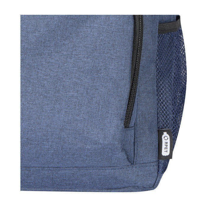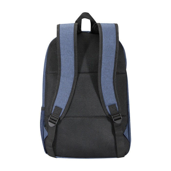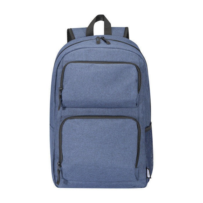 Zaino promozionale con ampio scomparto principale con zip che include una tasca imbottita adatta a contenere la maggior parte dei portatili misura 15.6'' e una tasca dedicata porta tablet con alloggiamento per altri oggetti di lavoro. Le due tasche frontali offrono un'ampia area di personalizzazione e sono abbastanza grandi da contenere powerbank, cavi o altri oggetti. Tasca laterale a rete. Spallacci imbottiti regolabili e maniglia superiore imbottita. Poliestere 600D.