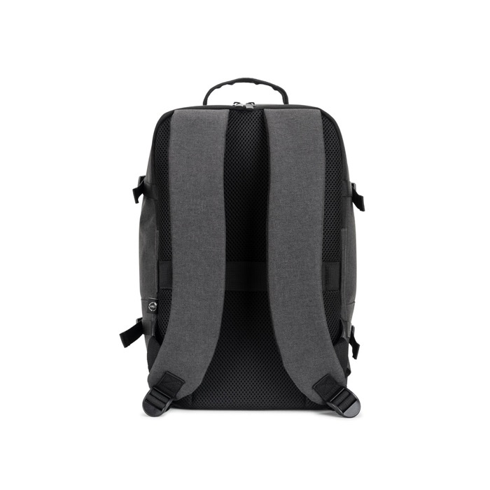 Offri ai tuoi viaggiatori d'affari uno zaino in poliestere riciclato, con dimensioni compatibili per le compagnie aeree e tasca per laptop da 14''. Questo accessorio idrorepellente, dotato di numerose tasche e spallacci comodi, garantisce grande capacità e praticità. Permette di ottimizzare gli spostamenti, evitando costi aggiuntivi per il bagaglio. Il tuo brand sarà associato a soluzioni intelligenti, sostenibili e che semplificano la vita dei tuoi collaboratori in ogni trasferta.