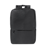 Elegante zaino in ecopelle e poliestere 600D dal design urbano. Ha una tasca centrale imbottita con doppia zip per tablet fino a 10" e computer portatili fino a 15", oltre a una tasca secondaria ed una frontale con zip. Schienale e spallacci imbottiti, regolabili e realizzati in tessuto traspirante per dissipare il calore. È dotato di una fascia per agganciarlo al trolley e di una comoda maniglia superiore. Confezionato singolarmente in un sacchetto riciclato.
