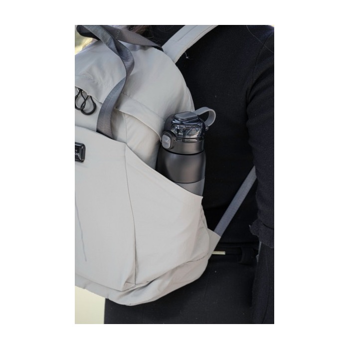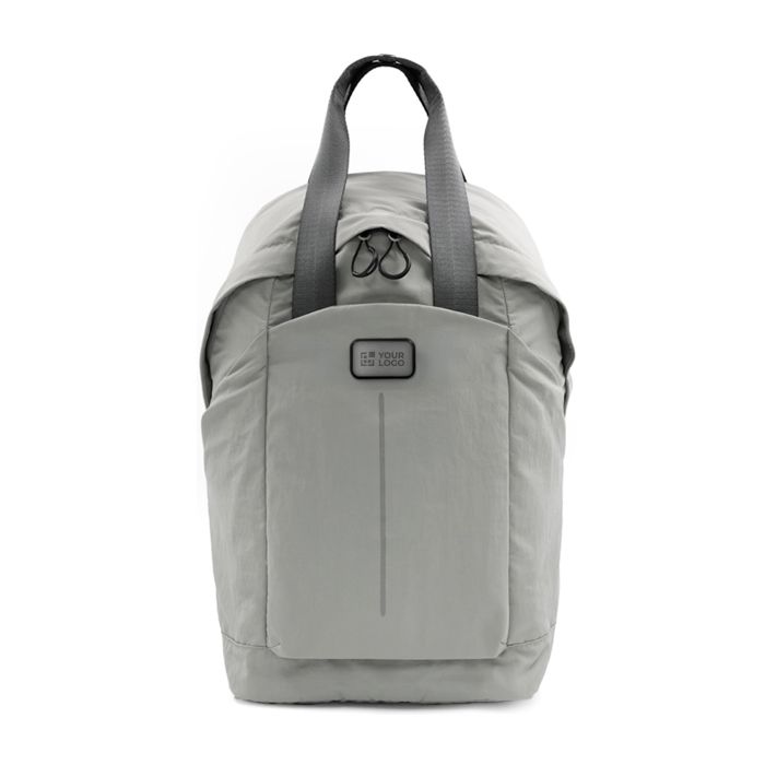 Zaino ultraleggero in nylon riciclato, con un design pensato per la routine quotidiana e gli spostamenti. Include uno scomparto imbottito per laptop da 16 pollici e cinque scomparti per tenere in ordine documenti, accessori e oggetti personali. È dotato di due tasche laterali, schienale imbottito e soffietto per aumentare la capacità all'occorrenza. La finitura idrorepellente e i dettagli riflettenti garantiscono praticità nella mobilità in città. Dispone inoltre di una fascia per trolley e di una maniglia superiore resistente, ideali per viaggi di lavoro ed eventi aziendali.