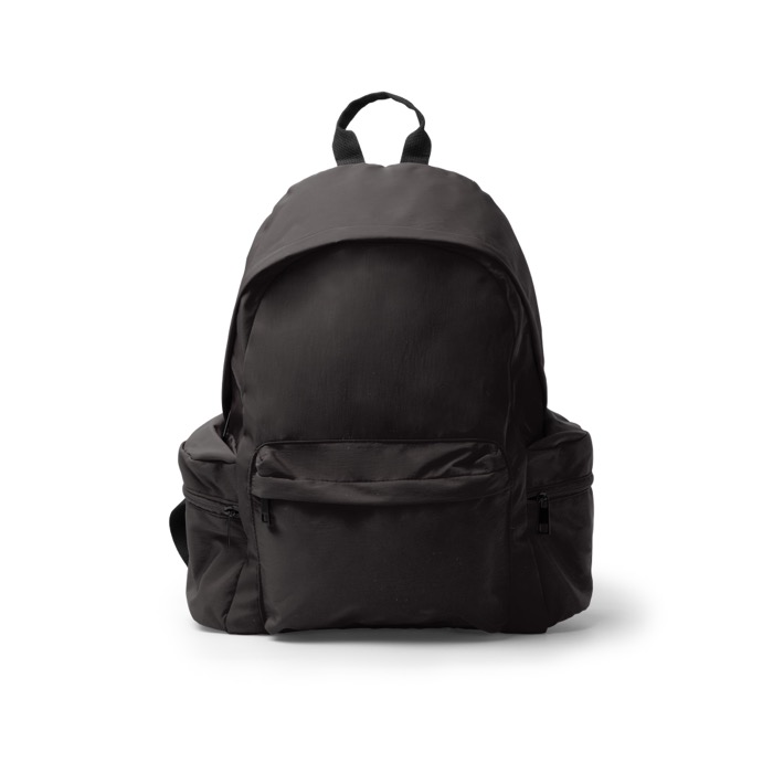 Zaino in nylon riciclato 420D dal design pensato per la quotidianità lavorativa. Integra uno scomparto principale con tasca interna per laptop fino a 15” e consente di tenere documenti e accessori in ordine. Include due tasche laterali doppie con apertura superiore e chiusura con cerniera, oltre a una tasca frontale anch’essa con cerniera per avere l’essenziale a portata di mano. Schienale e spallacci imbottiti migliorano il comfort durante spostamenti e visite. Utile come regalo aziendale in fiere, onboarding o attività di brand.