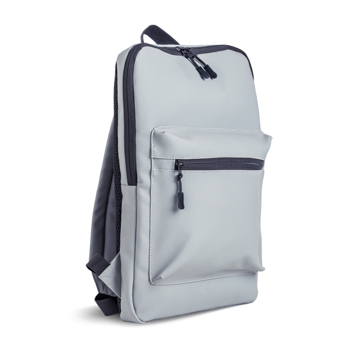 Zaino in Soft PU per laptop 15,6". Realizzato in Soft PU, combina eleganza e funzionalità con design discreto e raffinato. Permette di trasportare solo il laptop da 15,6" e il suo caricatore, ideale per spostamenti rapidi, riunioni o viaggi brevi. Personalizzabile con il logo aziendale, offre un’opzione pratica ed elegante come regalo aziendale, unendo utilità e visibilità del brand quotidiana.