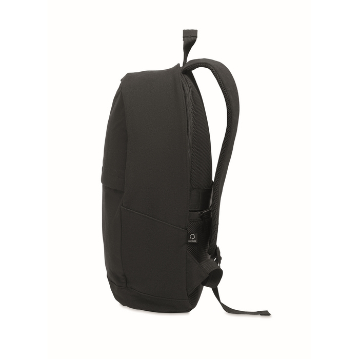 Zaino per portatile realizzato con cotone riciclato pre-consumo e poliestere riciclato. Tasche con cerniera, schienale e spallacci imbottiti per una maggiore comodità.