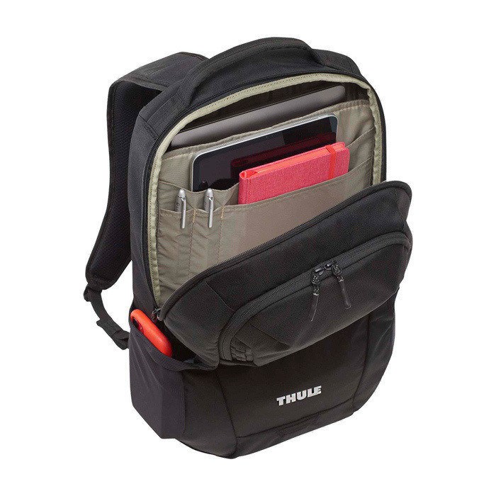 Lo zaino per portatile da 16” Thule Lumion è realizzato in poliestere riciclato e presenta una tasca anteriore con cerniera e uno scomparto più grande con cerniera e custodia imbottita per un computer portatile da 16''. Il manico superiore facilita il trasporto, mentre il retro imbottito offre un supporto lombare sulla parte inferiore. La tasca laterale per la bottiglia d'acqua e il portachiavi sono caratteristiche aggiuntive di questo zaino.