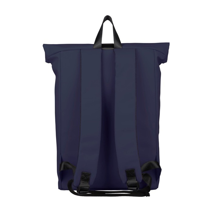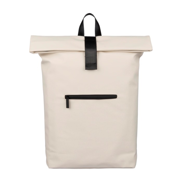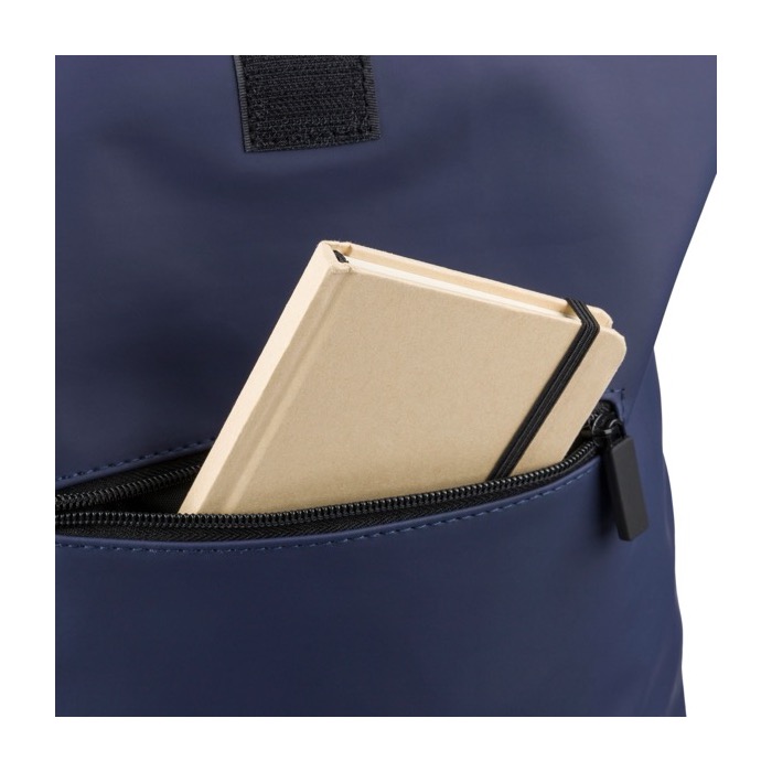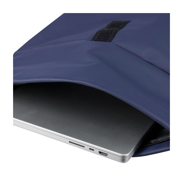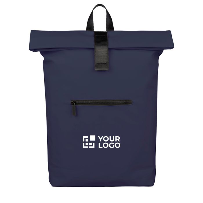 Zaino avvolgibile con chiusura in velcro, tasca frontale e scomparto per laptop da 16 pollici. Pensato per team dinamici e professionisti in movimento.