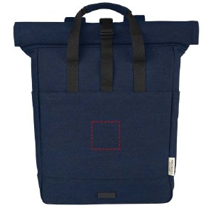 Zaino rolltop realizzato con materiali estremamente resistenti e sostenibili: 80% in cotone riciclato certificato GRS e 20% cotone normale 330g/m². Ha una custodia per tablet dedicata e uno scomparto imbottito per computer portatile da 15”. Lo zaino presenta anche 2 tasche laterali aperte e un'ampia tasca frontale con zip, nonché di un'apertura con zip sulla chiusura rolltop per offrire ancora maggior capacità contenitiva ed elevata sicurezza. Grazie ai 2 manici in tessuto rinforzato, è semplice e comodo da trasportare anche come una borsa da ufficio. Sul davanti in basso ha una placca decorativa in metallo dalla finitura opaca che può essere incisa a laser. Inoltre ha spallacci regolabili e fascia per agganciarlo al trolley. Capacità 15l.