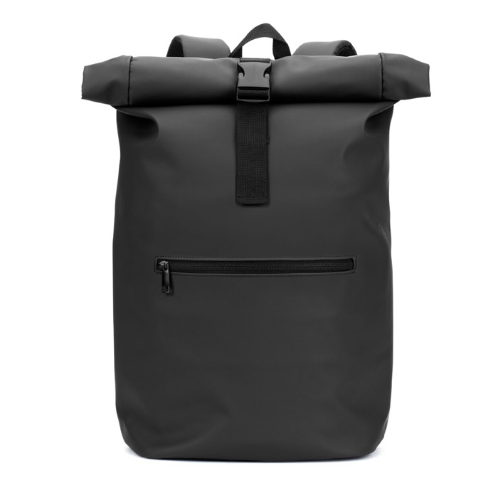 Zaino roll-top in ecopelle con interno in poliestere 210D, pensato per l’uso quotidiano in ambito professionale. La chiusura roll-top consente di regolare la capienza in base a ciò che serve trasportare, mantenendo un formato compatto. Include una tasca per laptop da 16" e uno scomparto principale per organizzare documenti e accessori. La tasca frontale con zip facilita l’accesso agli oggetti piccoli. Il pannello posteriore imbottito migliora il comfort e integra una fascia per trolley, utile per viaggi di lavoro ed eventi aziendali.