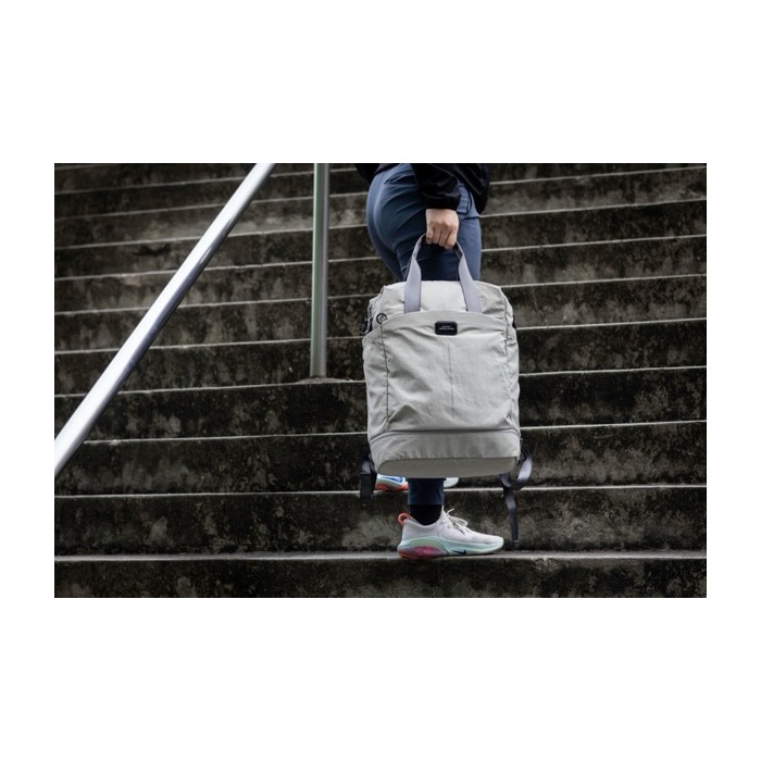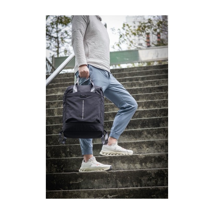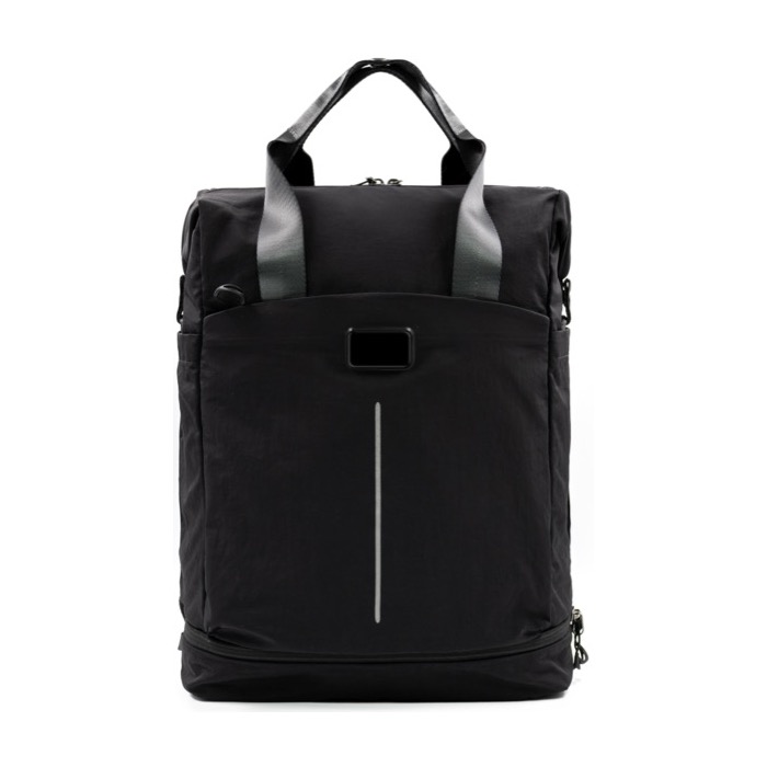 Zaino in nylon riciclato ultraleggero e resistente, pensato per l’uso quotidiano e gli spostamenti brevi. Offre una capacità di 2,3 L e un design ben organizzato: custodia imbottita per laptop da 16 pollici, scomparto per le scarpe, due tasche laterali e quattro scomparti interni. Lo schienale autoimbottito migliora il comfort e la fascia per trolley ne facilita il trasporto in viaggio. Include dettagli riflettenti e finitura idrorepellente per i tragitti in città. Un’opzione pratica per attività di branding in eventi, HR o dotazioni per il team.