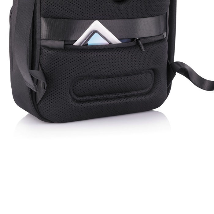 Borsa da lavoro e borsa sportiva allo stesso tempo. Tasca frontale espandibile, da 16 a 24 litri. Design antifurto senza accesso frontale e cerniere nascoste nel compartimento principale per maggiore sicurezza. Tasca protetta con RFID nella parte posteriore. Porta di ricarica USB rapida sulla tracolla dove c'è anche un supporto per occhiali da sole. Realizzato con materiali RPET e tecnologia AWARE™ (garanzia di utilizzo di materiali riciclati e di riduzione dell'acqua per la sua produzione).