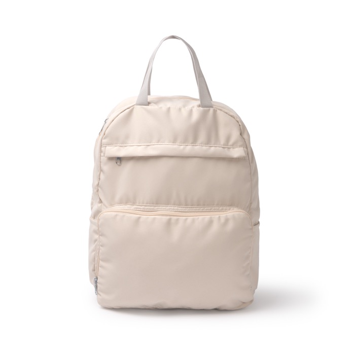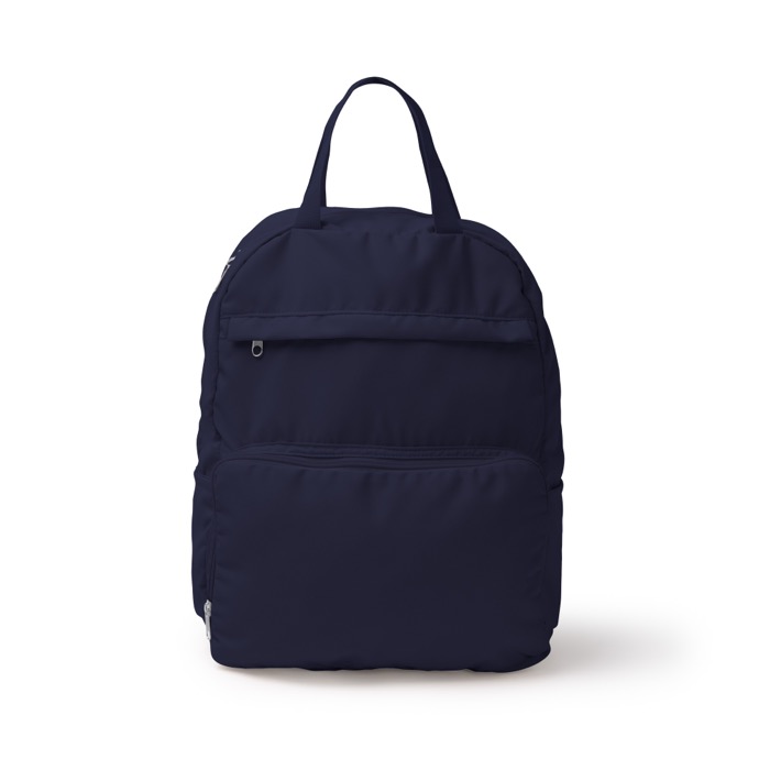 Zaino in poliestere e cotone dal design pieghevole, pensato per risparmiare spazio quando viene riposto. La tasca frontale con doppia zip aiuta a mantenere una struttura modellabile e a compattarlo quando non si usa. Include uno scomparto principale e due scomparti frontali per organizzare gli accessori, tutti con chiusura a zip. Dispone di doppio manico superiore per un trasporto rapido e spallacci imbottiti regolabili per indossarlo sulle spalle. Le tasche laterali consentono di trasportare bottiglie. Utile per iniziative HR, fiere o kit di benvenuto aziendale con logo.