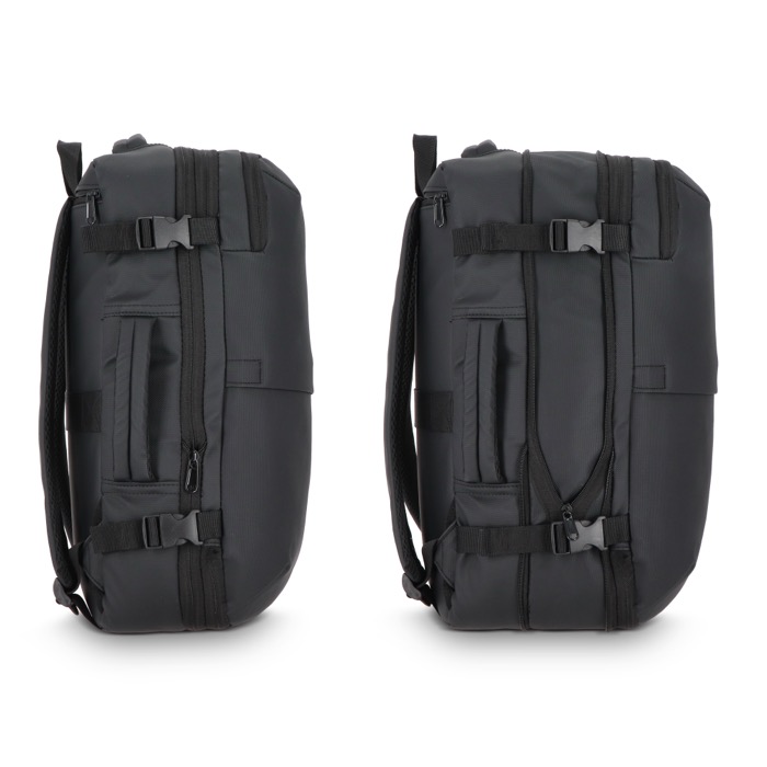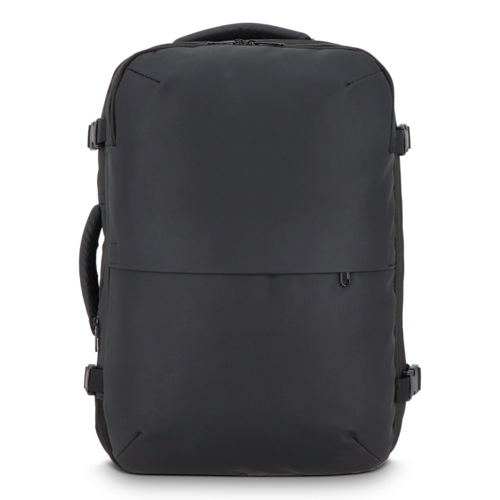 Zaino da viaggio in poliestere con sacca sottovuoto integrata e pompa ricaricabile, pensato per ottimizzare lo spazio durante gli spostamenti. Include uno scomparto imbottito per laptop e una sezione principale con apertura a 180° che facilita l’accesso e l’ordine, supportata da tasche in rete per separare capi e accessori. Il design espandibile aiuta a regolare il carico in base alla durata del viaggio e le dimensioni sono adatte come bagaglio a mano. Opzione pratica per viaggi aziendali, fiere e mobilità del team.